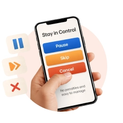 Pause, skip, or cancel your subscription anytime with no penalties or hassle.